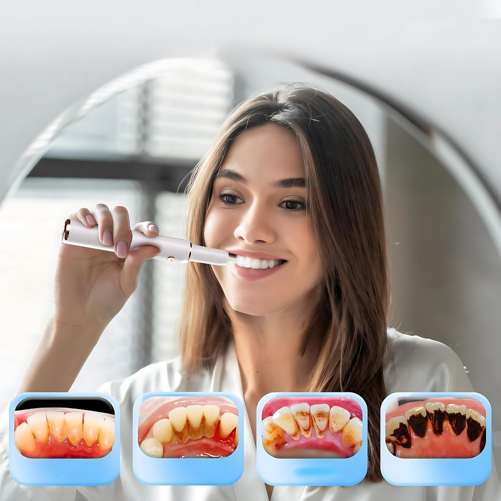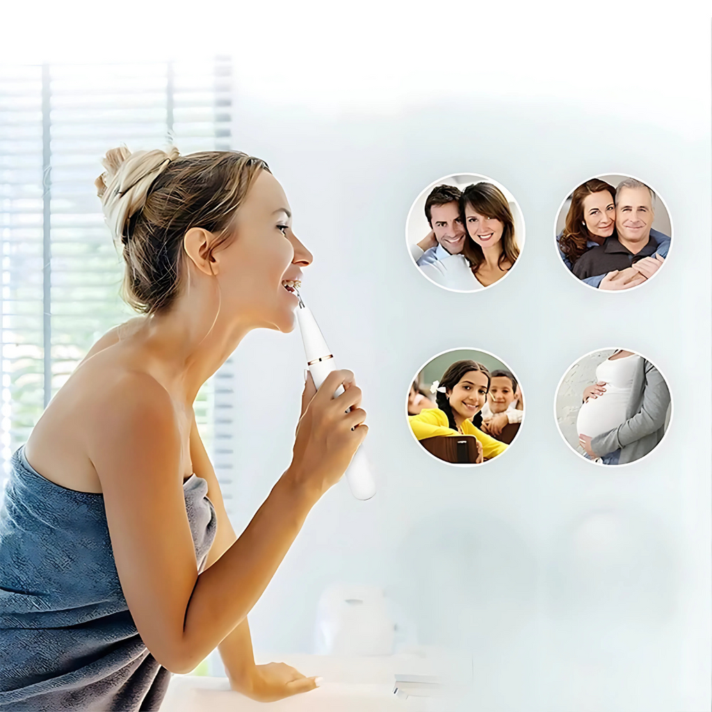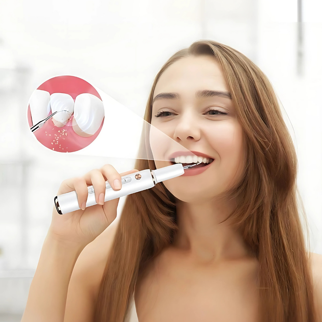 Take care of your teeth and gums in the comfort of your own home with this dental water flosser. It effectively removes plaque, tartar, and stains caused by coffee, tea, wine, or tobacco, while remaining gentle and safe for your gums thanks to its ultrasonic vibration system and integrated LED light. Compact, rechargeable, and easy to use, it adapts to your needs with its 5 cleaning modes, for precise and comfortable daily care, at home or on the go.