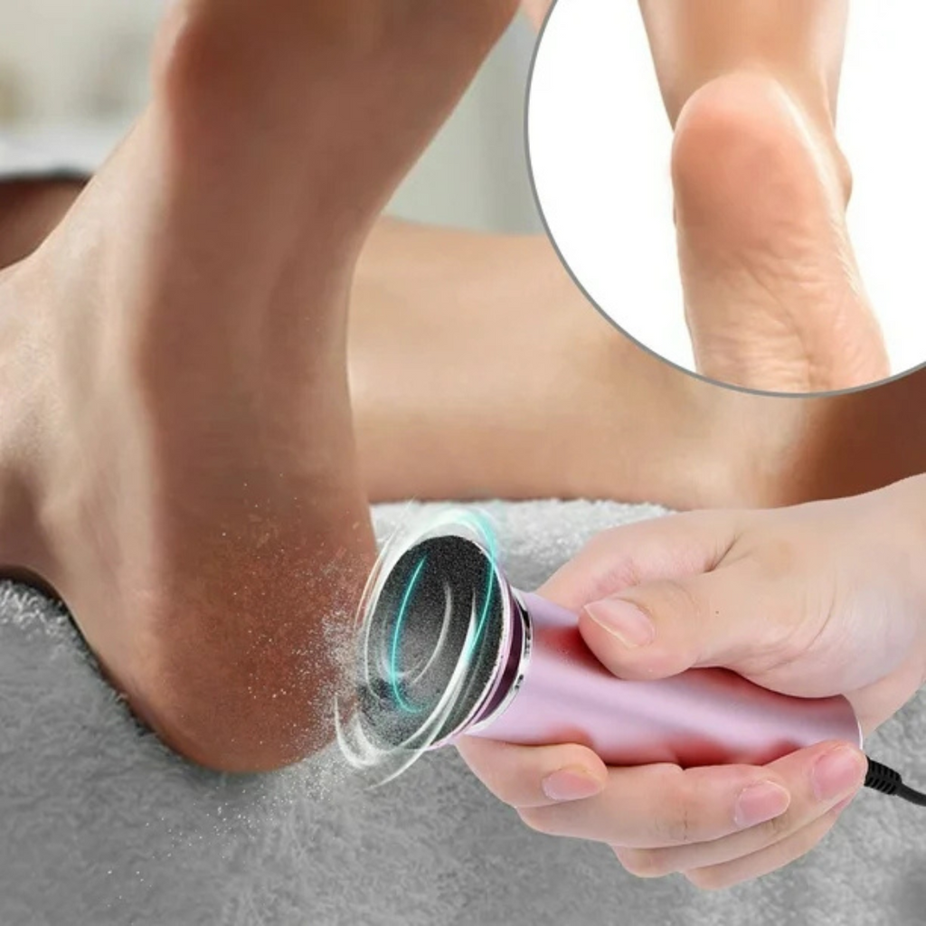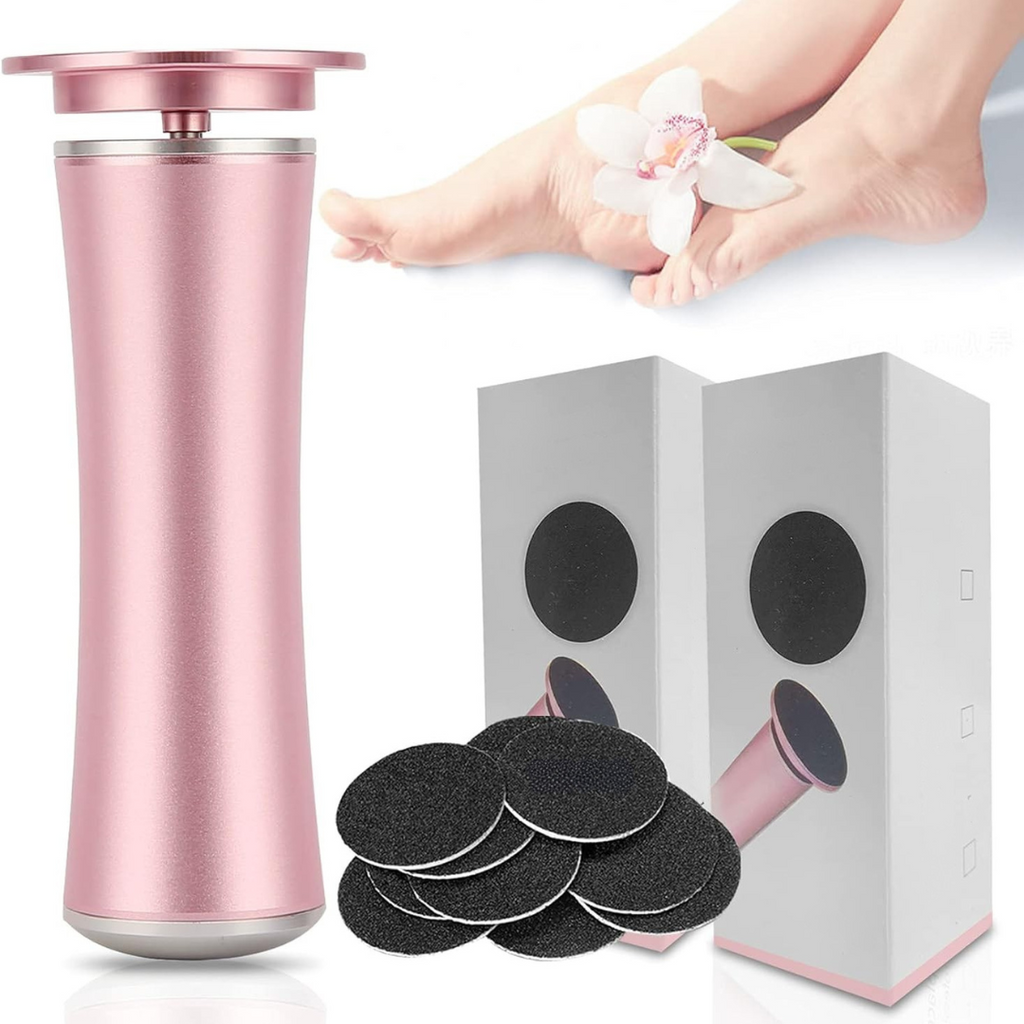 The electric foot file eliminates corns, calluses and damaged heels from the first use to reveal smooth and soft skin, while offering daily care that restores comfort and suppleness to dry feet; thanks to its 360° rotating system with two speeds and its mains power supply, it ensures optimal and lasting efficiency, complemented by a kit of 60 interchangeable discs — 30 Intense to remove corns and 30 Velvet Softness to gently smooth — to guarantee impeccable results day after day.