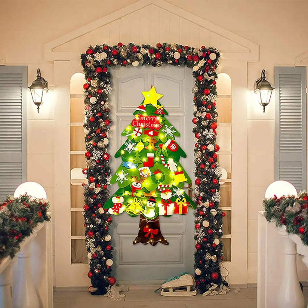 Bring the magic of Christmas home with this felt Christmas tree for children , designed to awaken the creativity and imagination of little ones. Playful, decorative, and educational, it transforms holiday preparations into a moment of fun and sharing with the family. Each Velcro decoration allows children to personalize their tree to their liking, while developing their fine motor skills and artistic sense. Lightweight, safe, and reusable, this tree becomes a true family tradition, synonymous with joy and wonder every year.
