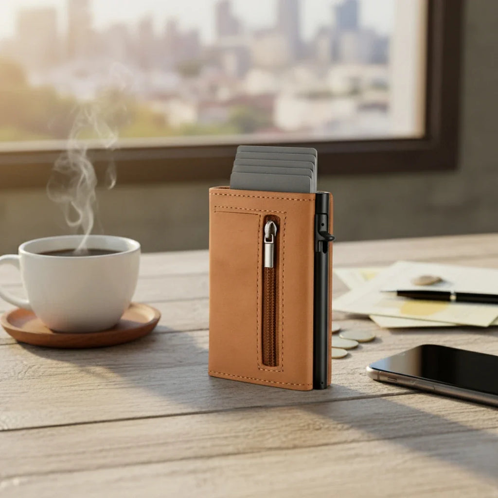 Alliant élégance, praticité et sécurité, le Portefeuille fin est conçu pour ceux qui recherchent un accessoire à la fois discret, moderne et fonctionnel. Compact mais spacieux, il permet de ranger vos cartes, billets et pièces sans encombrement, tout en offrant une protection RFID efficace et un accès fluide à vos essentiels.